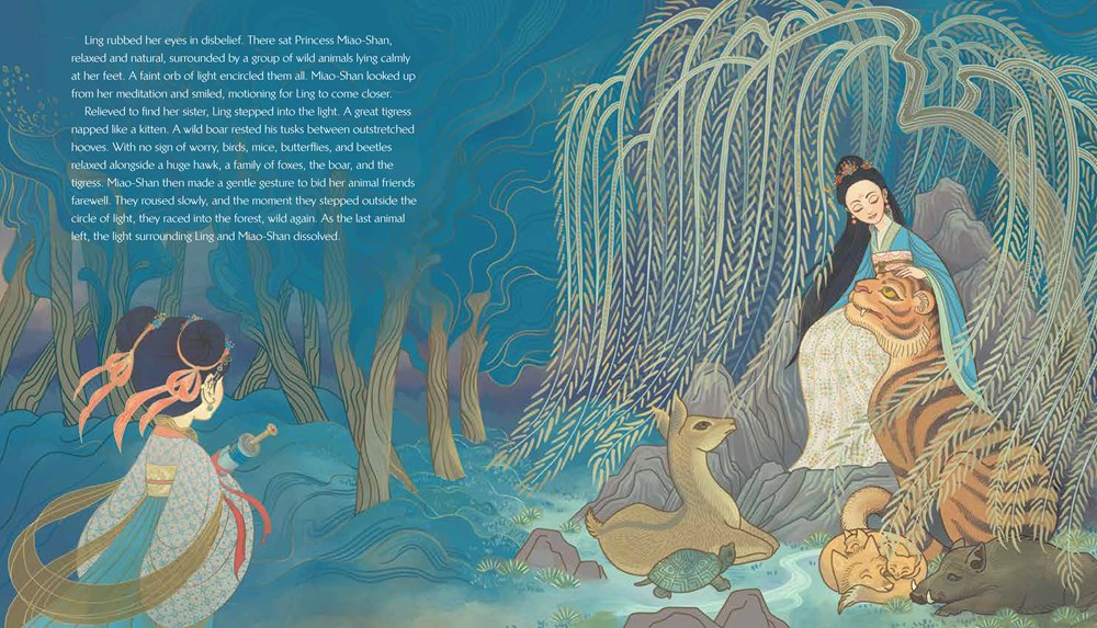 Miao Shan isn't your typical princess. She likes to spend her time quietly meditating with the creatures of the forest or having adventures with dragons and tigers. Miao Shan's heart is so full of love that her dream is to spread happiness throughout the land and help people endlessly. But her father has other plans for her--he intends to have her married and remain in the palace. With the help of her little sister Ling, Miao Shan escapes and begins her journey to discover the true meaning of compassion.
